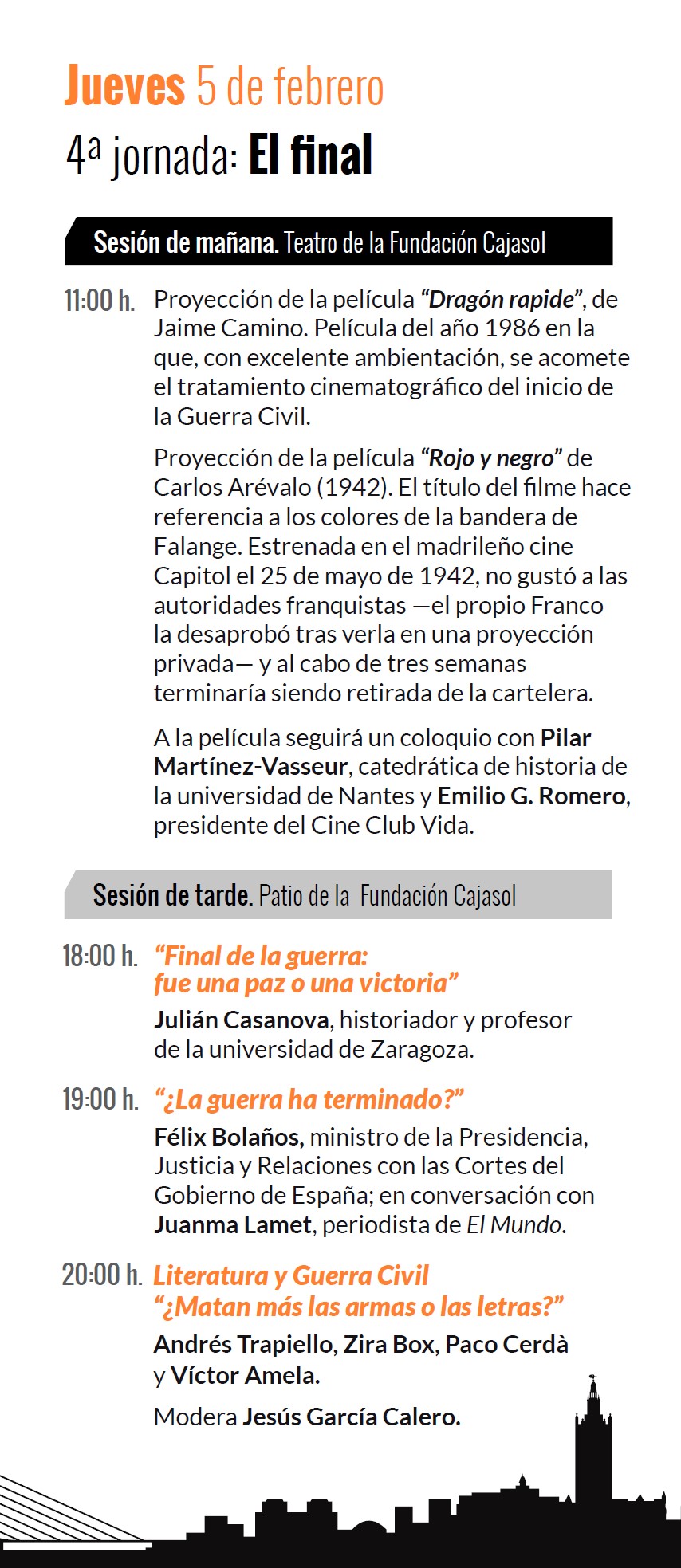 Uclés no viene a Sevilla porque en el cartel de 35 participantes están Aznar y Espinosa de los Monteros. Él no va a un sitio donde ni iba a compartir mesa con ellos. Yo sí, con el segundo: moderaré una charla con Espinosa, Ester Muñoz (PP), Maíllo (IU) y María Márquez (PSOE) sobre las relaciones de la política actual y la Guerra Civil. No estaré en Sevilla para opinar esta vez —he acudido a dos ediciones— sino para gestionar tiempos y dar pies, como hice el año pasado —o intenté hacerlo— en un encuentro entre Patxi López y Miguel Tellado. Mi opinión sobre la Guerra Civil está repetida una y otra vez en publicaciones, radios, teles…: no la perdimos todos, la perdieron los defensores de la democracia ante unos golpistas asesinos. Pero precisamente acudo a este encuentro —y a tantos congresos a los que he ido en desacuerdo con sus títulos— por eso: para matizarlo, explicarlo o desmontarlo al lado de sus organizadores. De esos debates salen los avances.