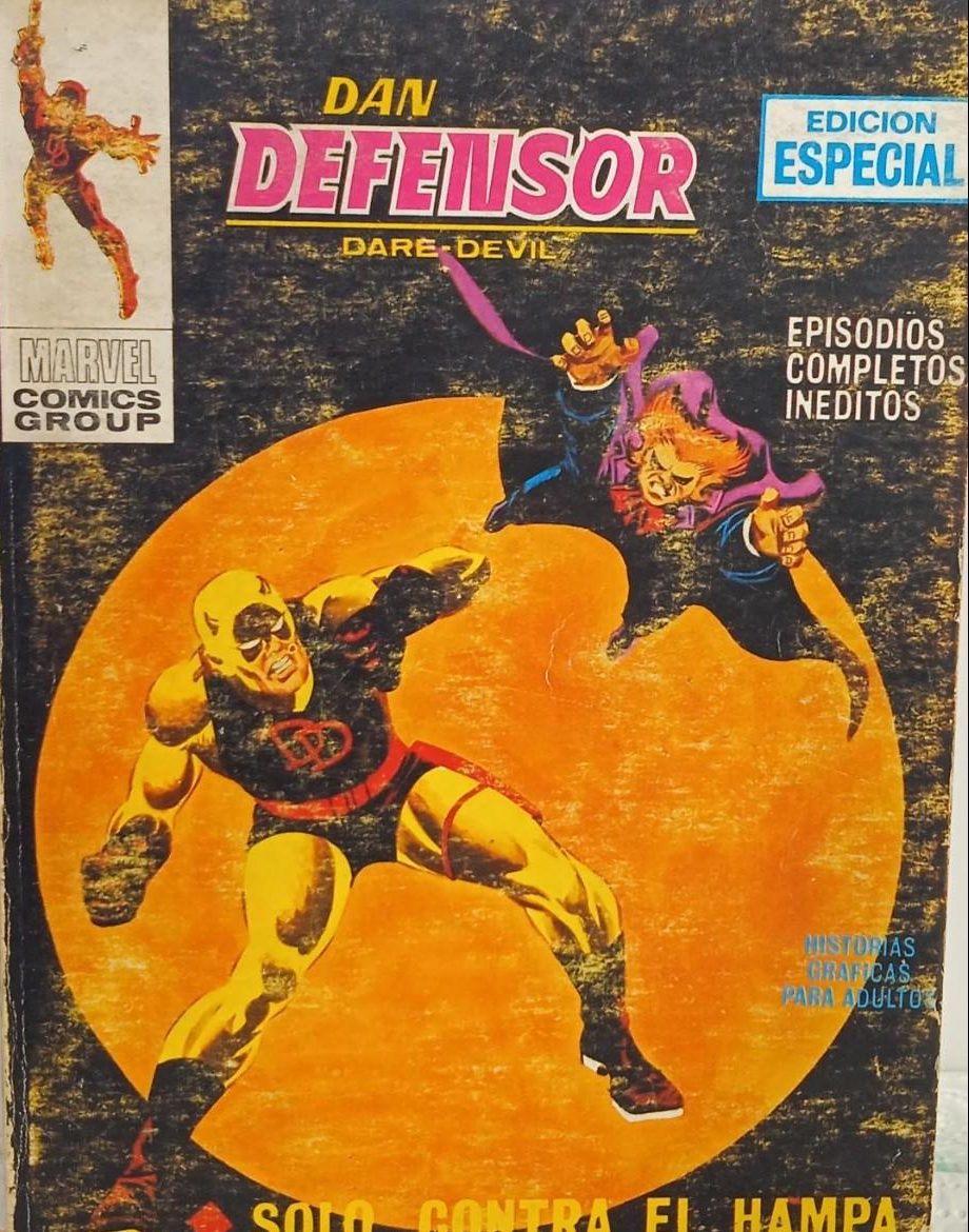 Aún puedo recordar el olor a encurtidos de la tienda de Briviesca donde, acompañado por mi padre, me esforzaba en deshacer las dudas acerca de qué novela de Marvel me llevaría esa vez. Sinestesia llaman ahora a esa confusión de percepciones, por cierto. El caso es que aquellos tomos de 128 páginas en blanco y negro publicados por Vértice me encandilaban. Conan, Spiderman, el Capitán América y, por encima de todos ellos, Dan Defensor.