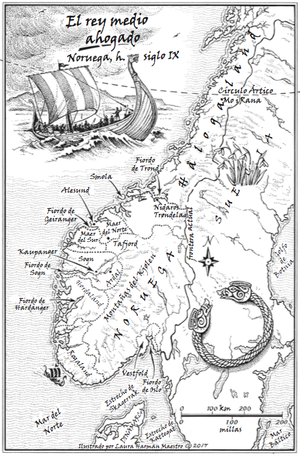Inspirándose en las sagas islandesas, Linnea Hartsuyker narra las aventuras y desventuras del joven Ragnvald el Sabio, brazo derecho del primer rey de Noruega, Harald Cabellera Hermosa, y de su hermana Svanhild. Ambientada en un mundo rudo e implacable, donde prevalecen el honor y la lealtad, el coraje y la pasión, El rey medio ahogado es el primer volumen de una epopeya histórica que ilumina con fuerza el mundo vikingo en los albores de Escandinavia. Ofrecemos el comienzo de la novela, publicada por Salamandra y traducida por Javier Guerrero.