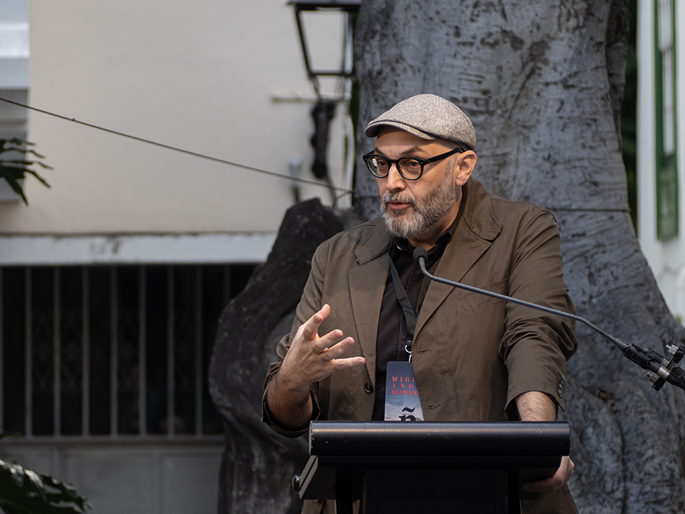Si durante esta semana don Mario nos vigiló desde las alturas, el cónsul lo hizo en la plaza, atento a cada conversación desde que Ferrero y Lavín lo invocaran. En la presentación del festival, el vicepresidente del Cabildo recordó la famosa frase Vargas Llosa “aprender a leer es lo más importante que me ha pasado en la vida”, y Nicolás Melini le matizó que la pronunció en La Palma, cuando durante una ponencia vio a unos niños jugando en el suelo de la plaza. Tampoco faltó a la cita Pepe Esteban. Aunque no pudo acudir este año de forma física, su figura resplandeció en cada charla y en el corazón de todos sus amigos, que son legión. Y así dijimos adiós, acabando como empezamos, en la Plaza de España, con otro buen número de escritores atrapados por las raíces de sus laureles de Indias. El festival terminó este año sin discurso final. No hubo un punto final, ni siquiera un punto y coma. Se clausuró con la intención de que el día siguiente fuera el primero de la edición de 2026. Me quedé pensando en ello, y cuando me quise dar cuenta estaba solo en la plaza. Sólo los fantasmas seguían a mi lado. Y así, bajo el volcán, comencé a desvanecerme, y cuando estaba a punto de lograrlo, me acordé de Bonilla y pensé: ¿por qué no puede ocurrir?, ¿por qué no puede haber por fin justicia para Borges?