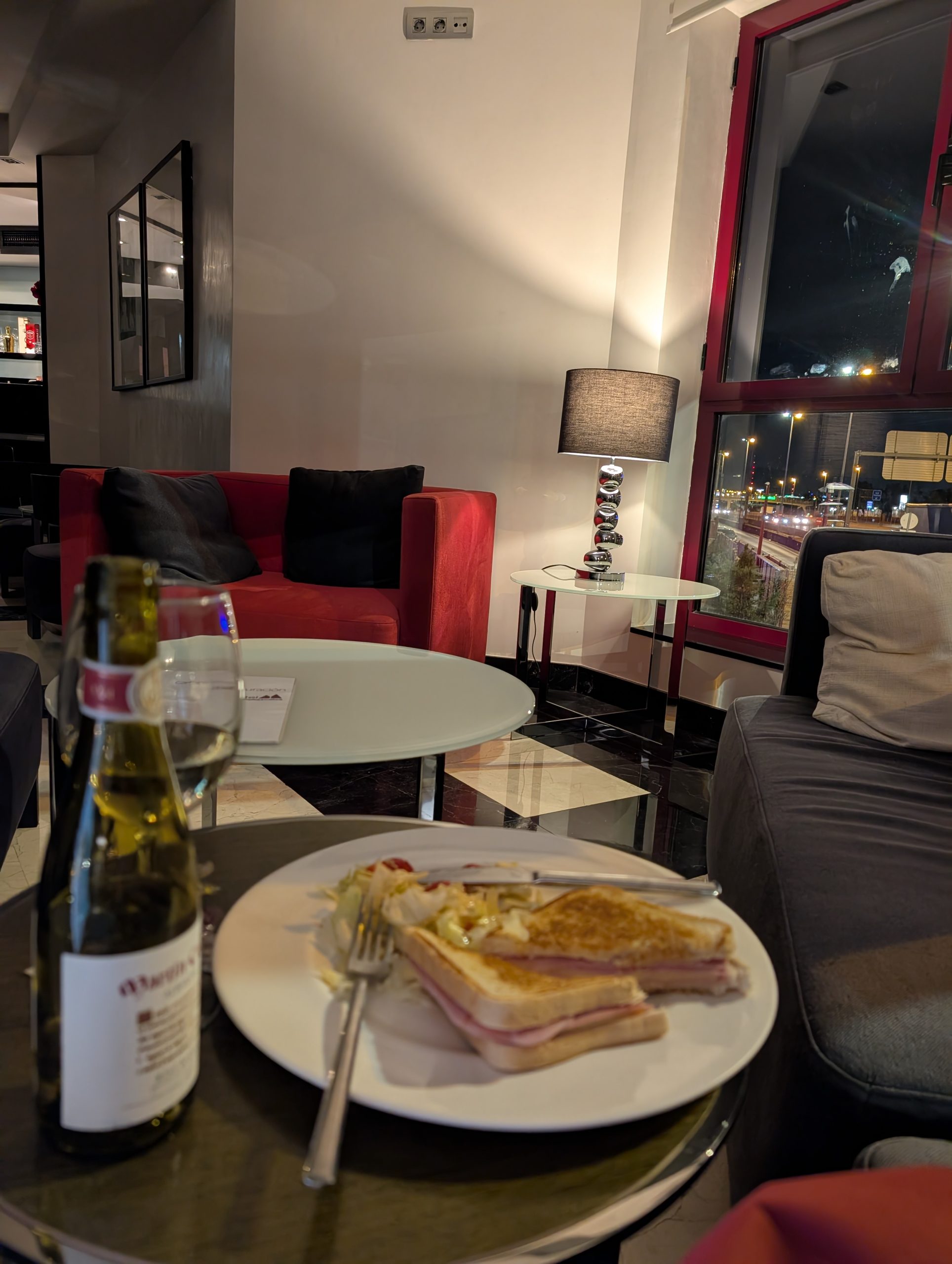 El bar era una suerte de cápsula temporal: podría haber sido la sala de espera de un ambulatorio de los noventa transmutada en cafetería minimalista. Estaba desierto. La misma chica del check-in me explicó que podía prepararme un sándwich en la cocina, pero que no servían tinto por copas.