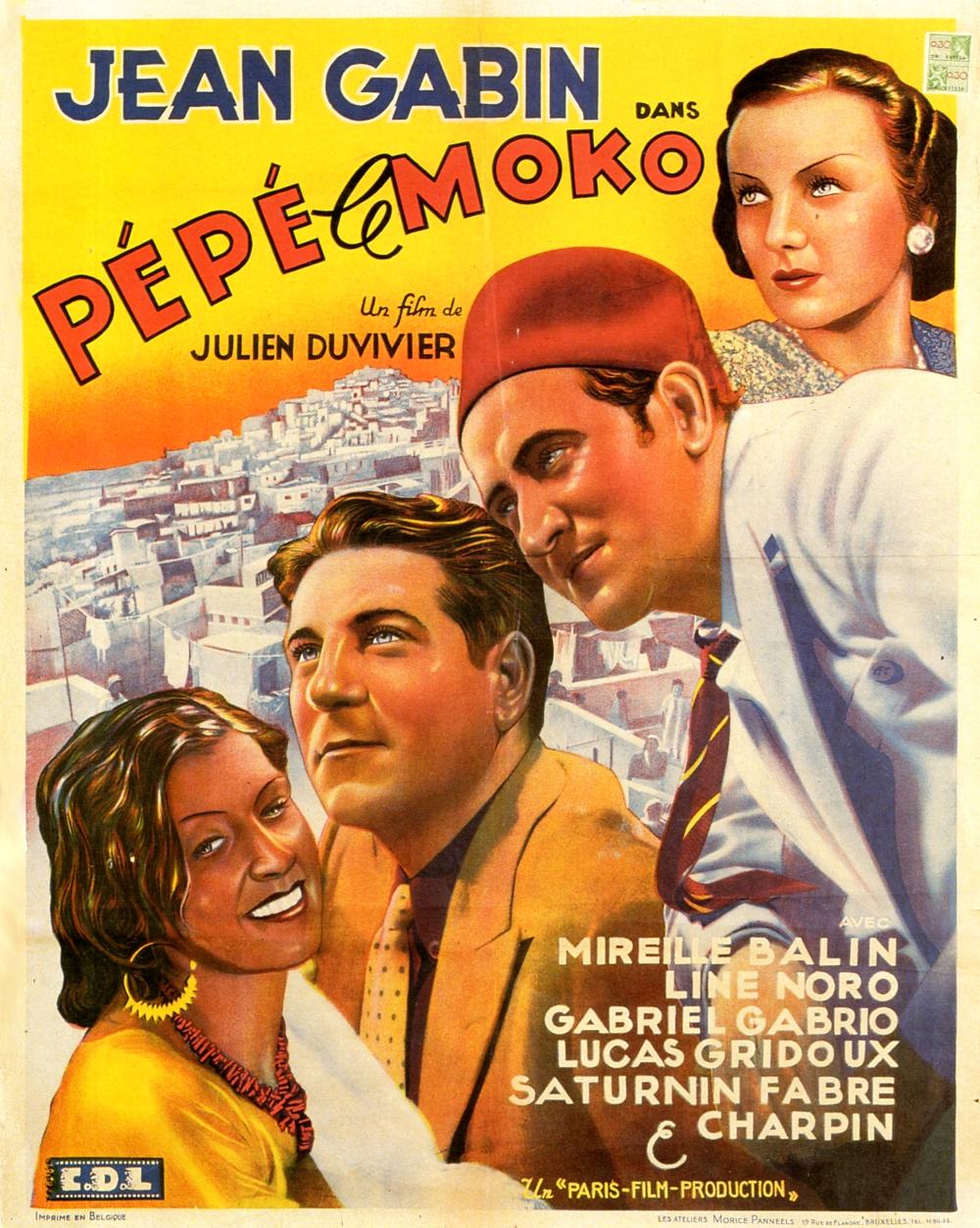 “Moko” dícese en el argot provenzal a los marineros de la armada francesa destinados en el Mediterráneo. Nuestro Pépé le Moko, recreado por Jean Gabin en uno de los personajes más destacados de su carrera, es un jefe del millieu —la mafia parisina— transterrado en Argel, de cuya Casbah, donde encontró refugio huyendo de París, no puede salir, so pena de ser detenido por la policía. Casbah que, por cierto, fue reproducida en los estudios Joinville ya que el tomavistas no hubiera podido evolucionar por las angostas callejas de la antigua ciudadela de Argel. Dichas estrecheces son un punto donde no impera la ley, entre otras cosas, porque sus agentes no pueden entrar allí a imponerla so pena de perderse o ser asesinados impunemente por el intrincado entramado de angostas callejas. Allí, que otrora fuera la ciudadela de la ciudad, ahora constituye el núcleo, el último reducto del Argel árabe: Francia no ha podido colonizar la Casbah. En esta misma Casbah, unos años después, Gillo Pontecorvo localizará el germen de la insurrección del Frente de Liberación Nacional argelino contra la metrópoli en La batalla de Argel (1966).